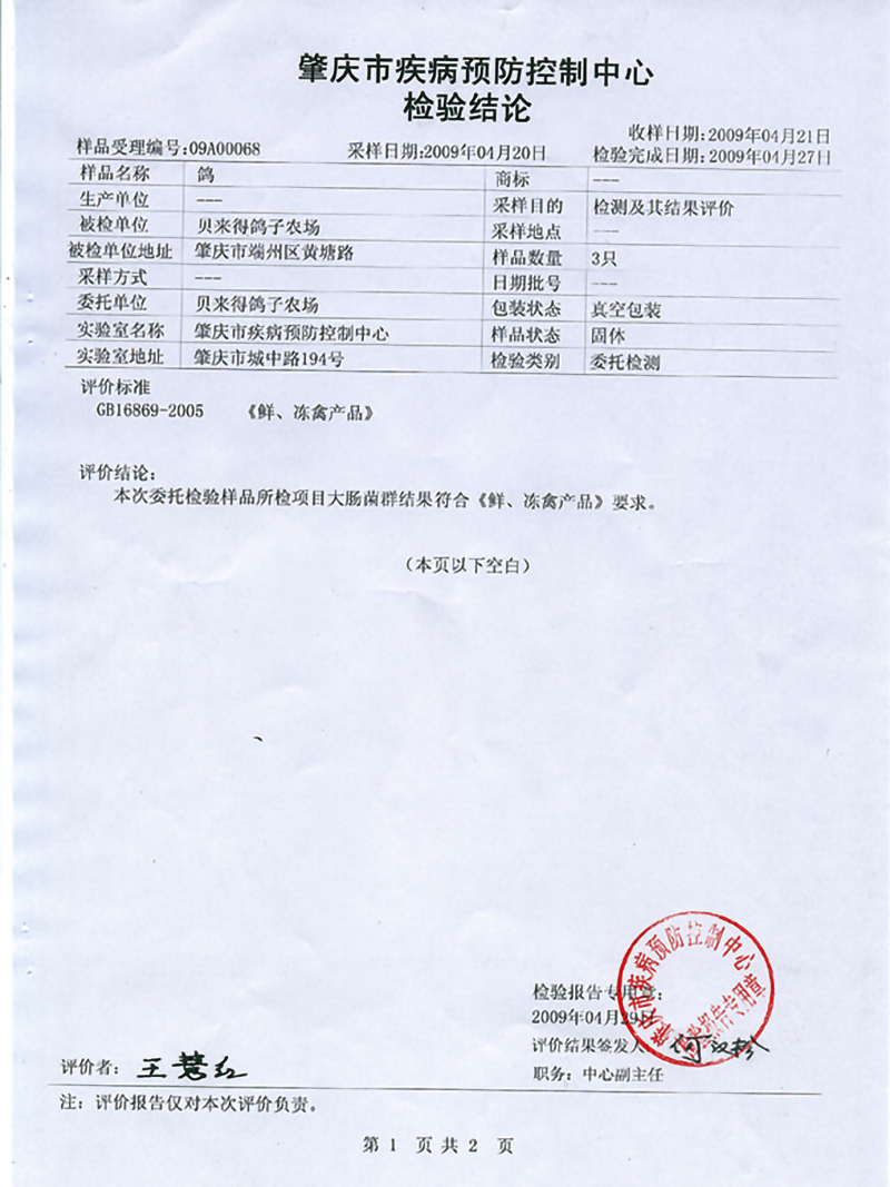 卫生部门检验报告
