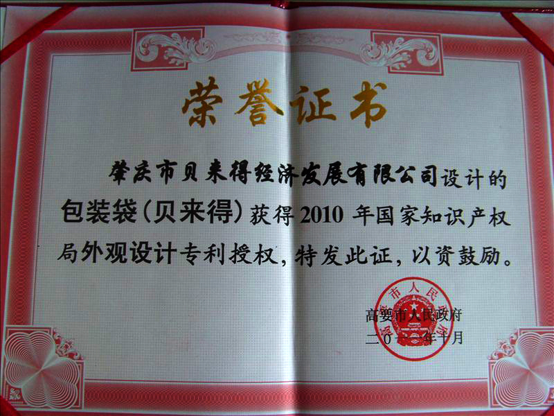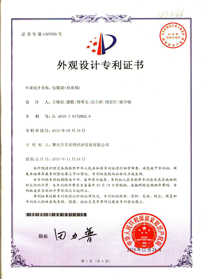 贝来得包装袋外观专利