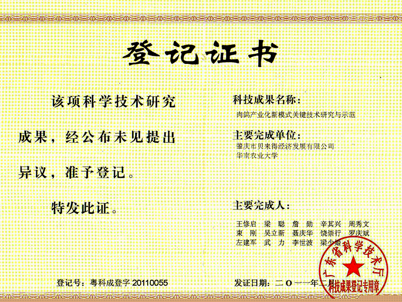 科研成果登记证