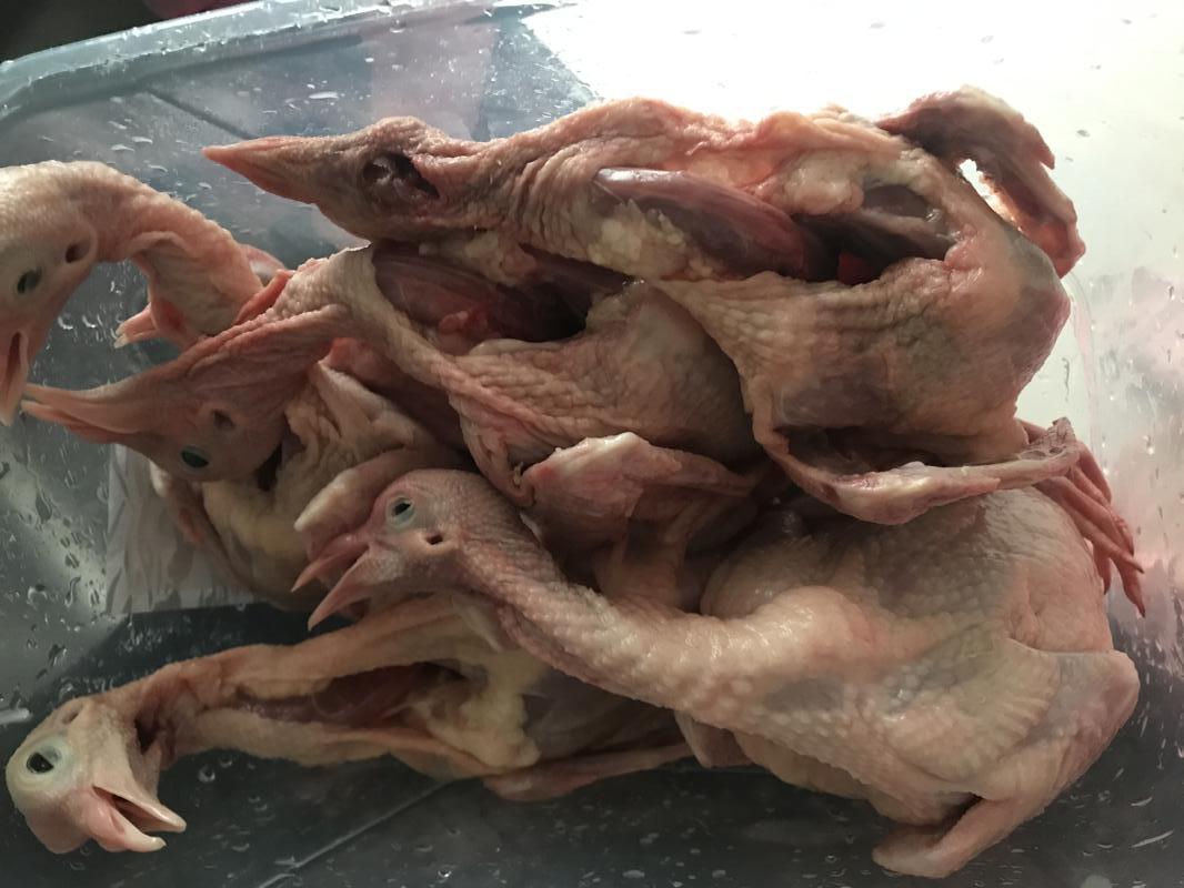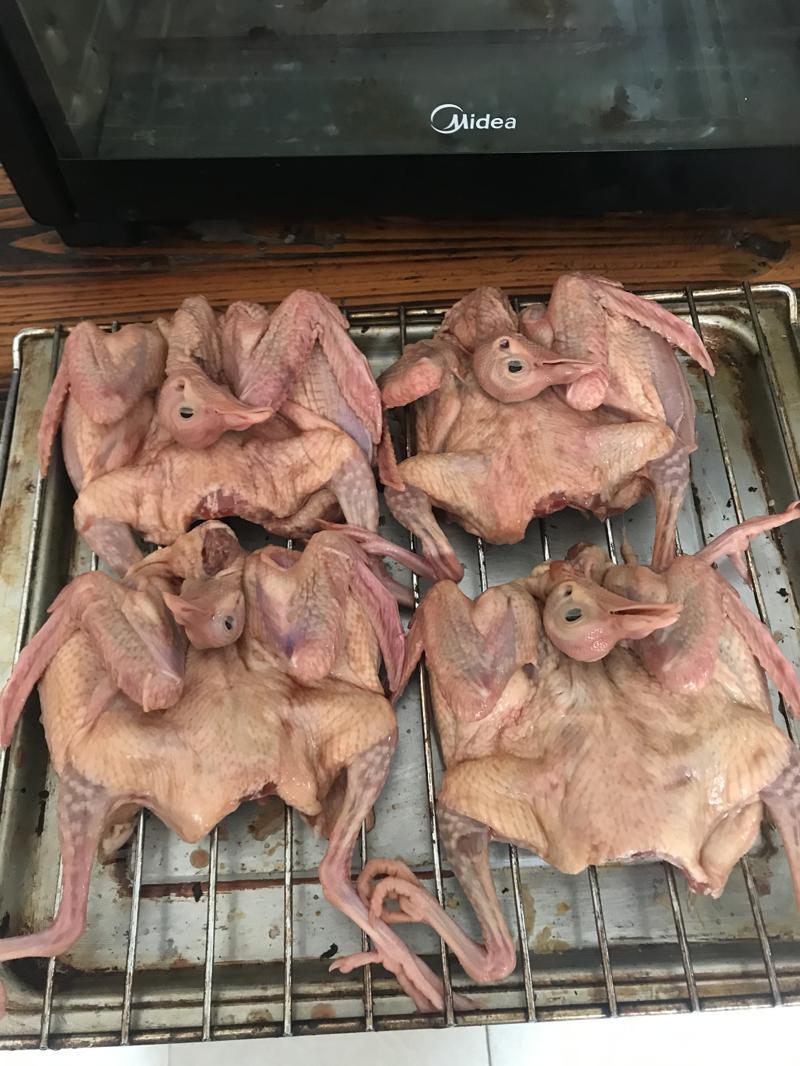 1、乳鸽解冻6只,解冻好后开胸去尾整理好