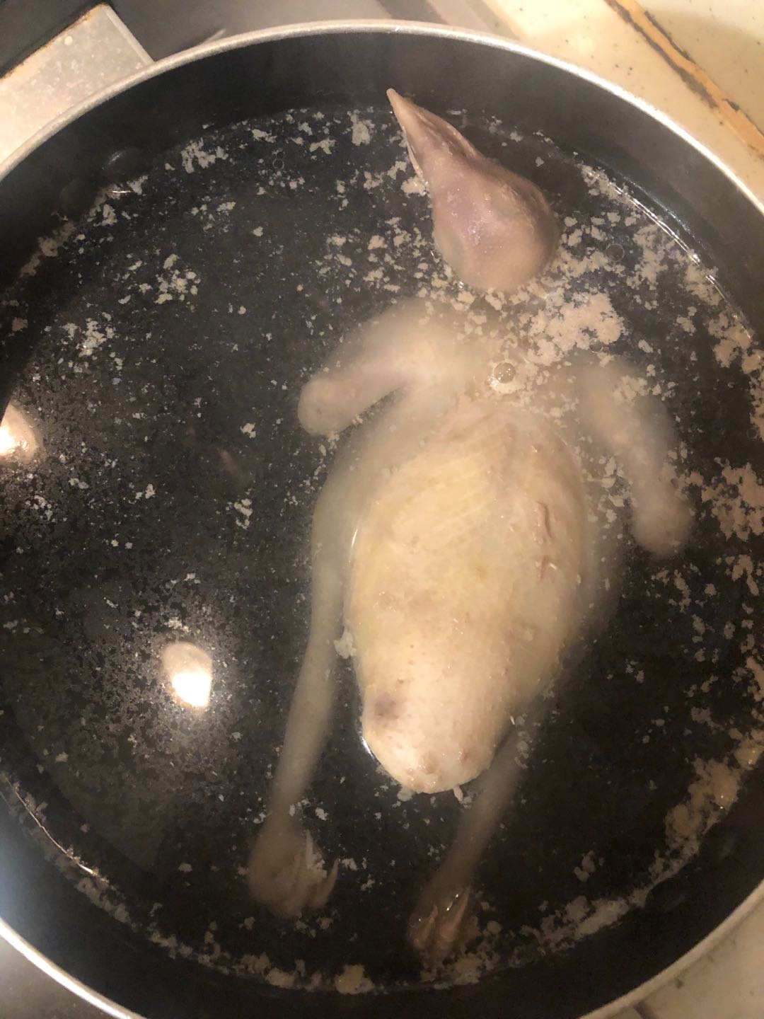 1、乳鸽洗净放入沸水中出一下,然后过冷水备用。